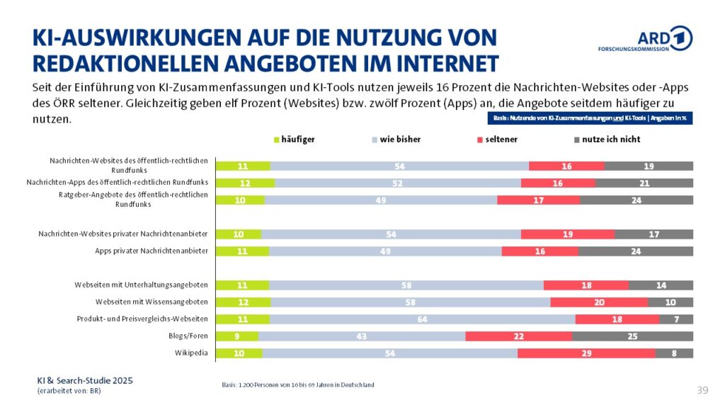 Hinweise auf geringere Nutzung redaktioneller Angebote wegen KI